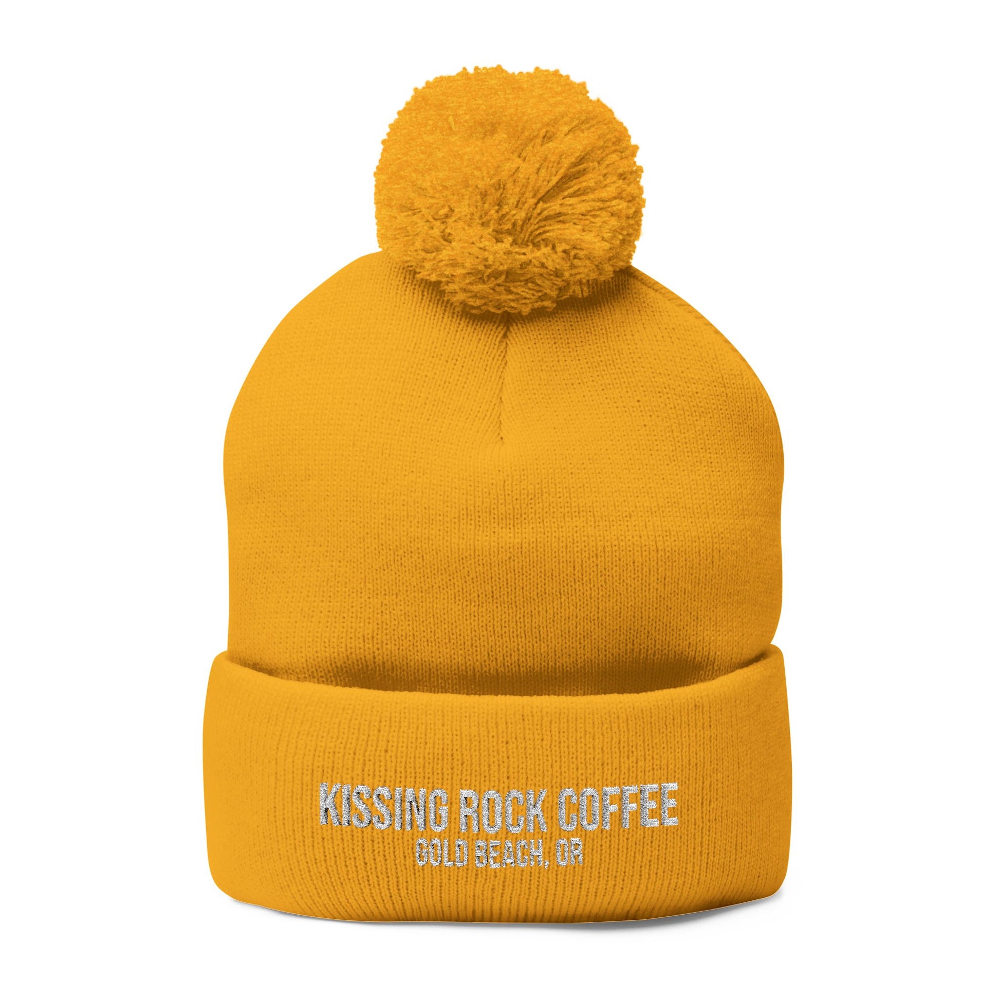 Embroidered Pom-Pom Knit Cap — Cozy Mustard Beanie with Fold Cuff